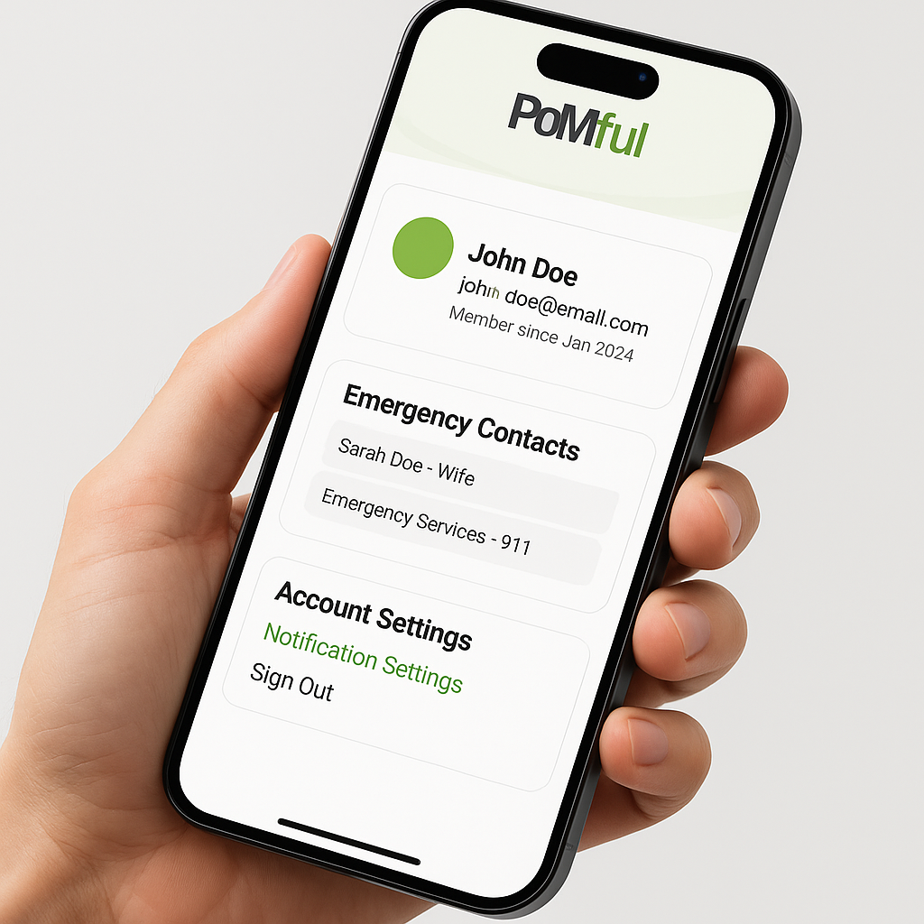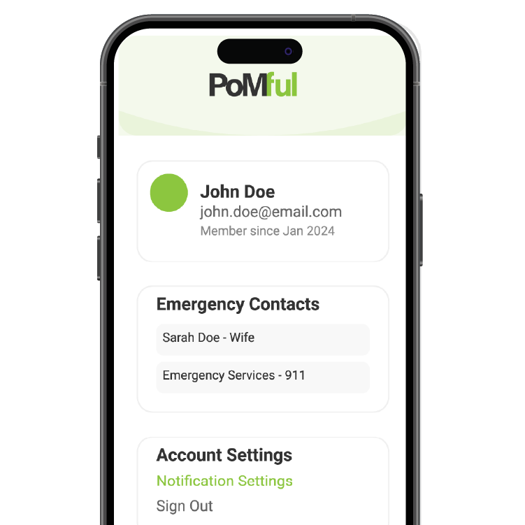 PoMful helps people who live alone and their loved ones solve the “what if something happens” worry so that they can live with peace of mind and keep their privacy.